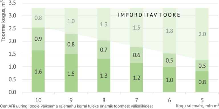 Raiemahu langetamisel suureneks imporditava ning väheneks eksporditava toorme hulk. Est-For Investi juhatuse liige Aadu Polli kinnitas, et raiemahu langetamine tehase rajamist ei mõjuta. Planeeritava tehase sõltumatuse raiemahust tagab asukoht raudtee vahetus läheduses, võimaldades vajadusel tõsta imporditava toorme osakaalu Lätist, Leedust ja Valgevenest.